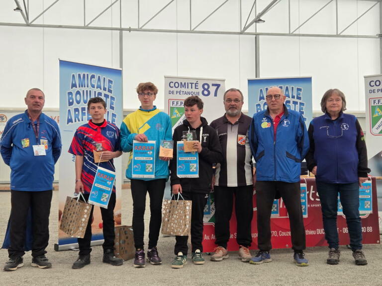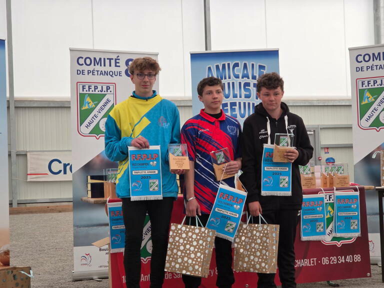 Amael Larrede est vice champion triplette junior, accompagné de Jules du club de Linard et de Noé du club de joliot Curie